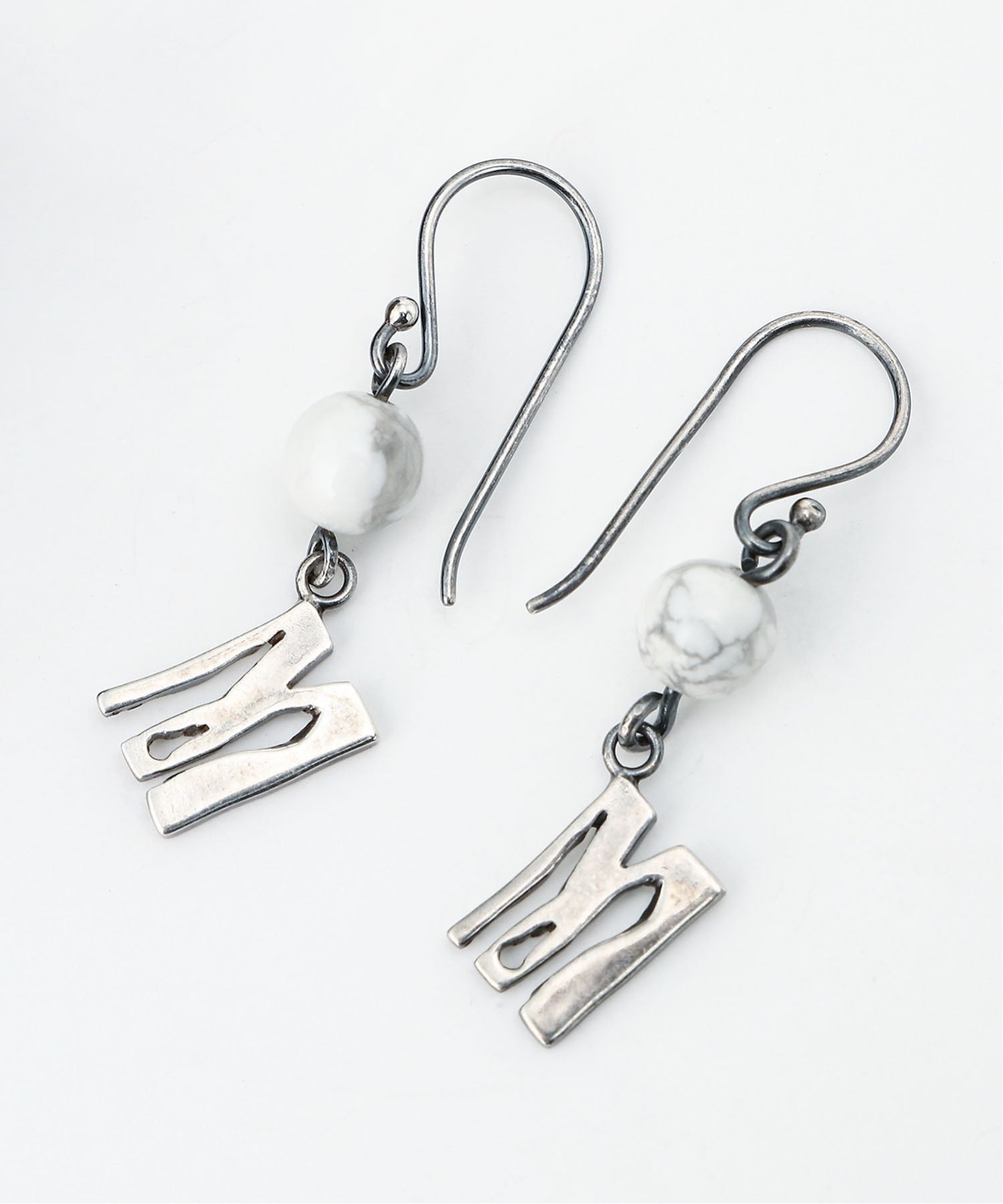 シルバーで模ったMOQUIPロゴタイプのMモチーフに天然石を組み合わせたピアス。シルバーになじむマットでニュートラルなマグネサイトをあしらったカラーです。