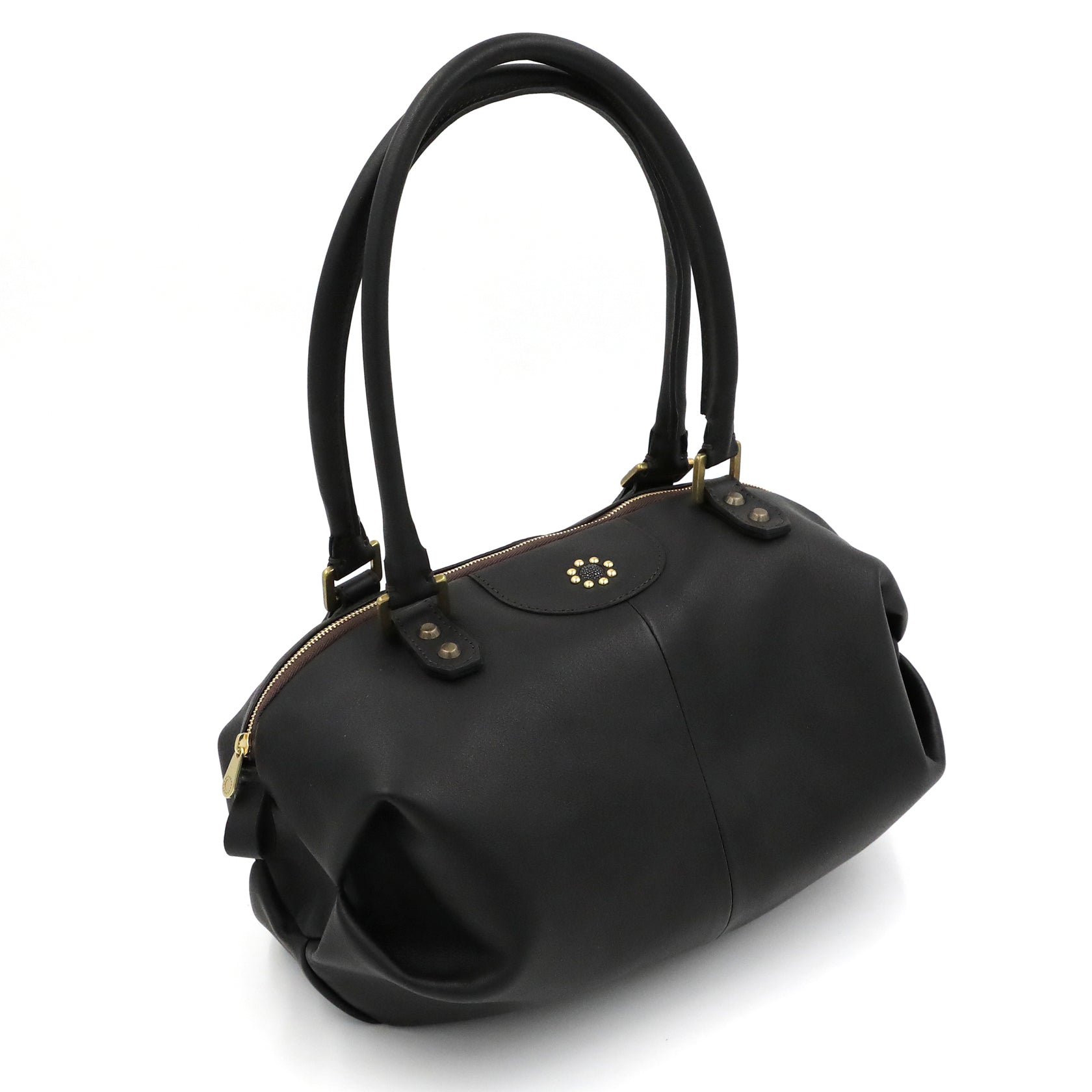ワイン樽のようなシルエットのバレルバッグ。折り重ねられたサイドのアングルが特徴的でふんわりとした横顔もチャーミングです。ショルダーは肩掛けできる長さに設計されています。