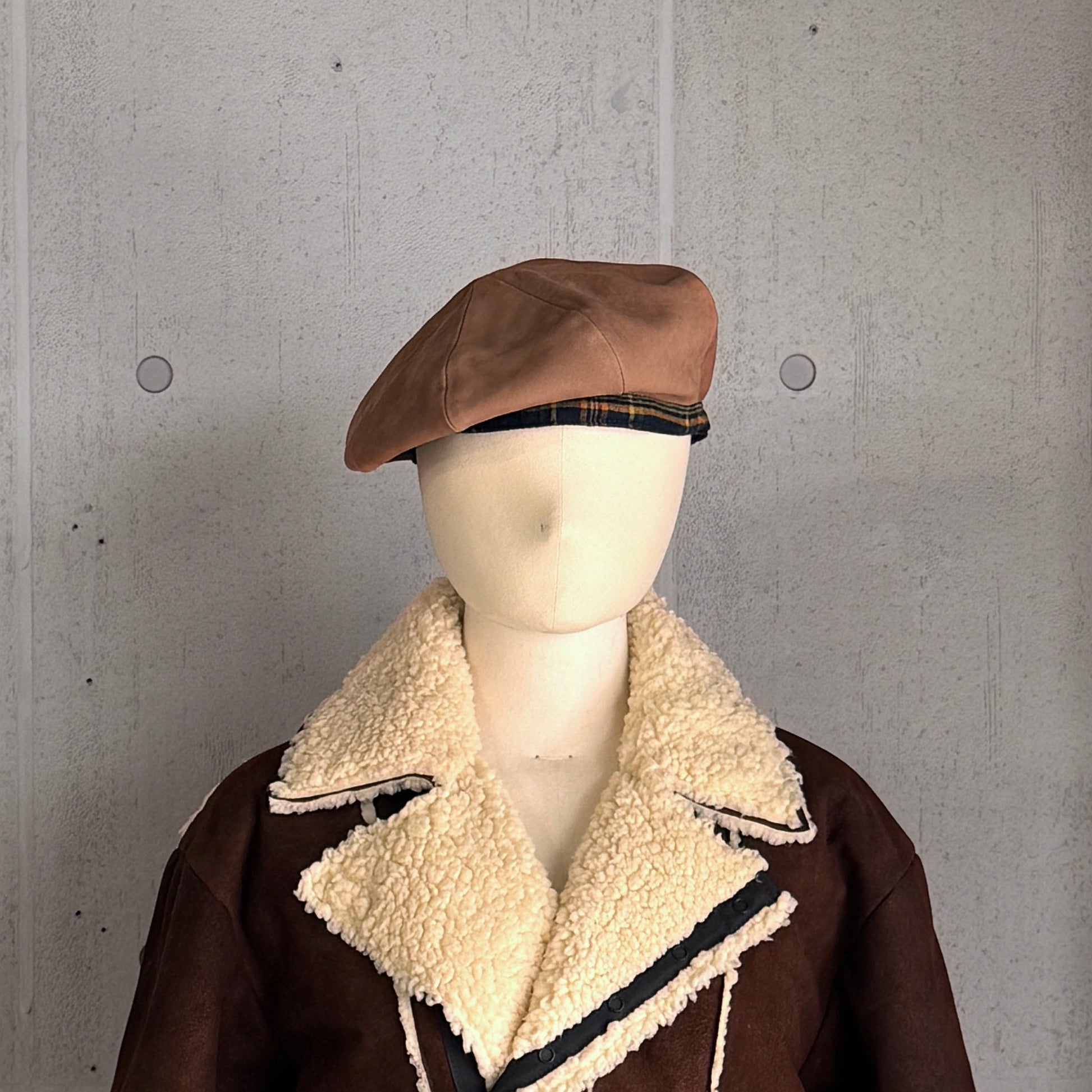 柔らかく起毛させたMOQUIPオリジナルの植物タンニン鞣し牛革ヌバックで仕立てたベレー帽のこちらはナチュラルで柔らかい印象のライトブラウンカラー。