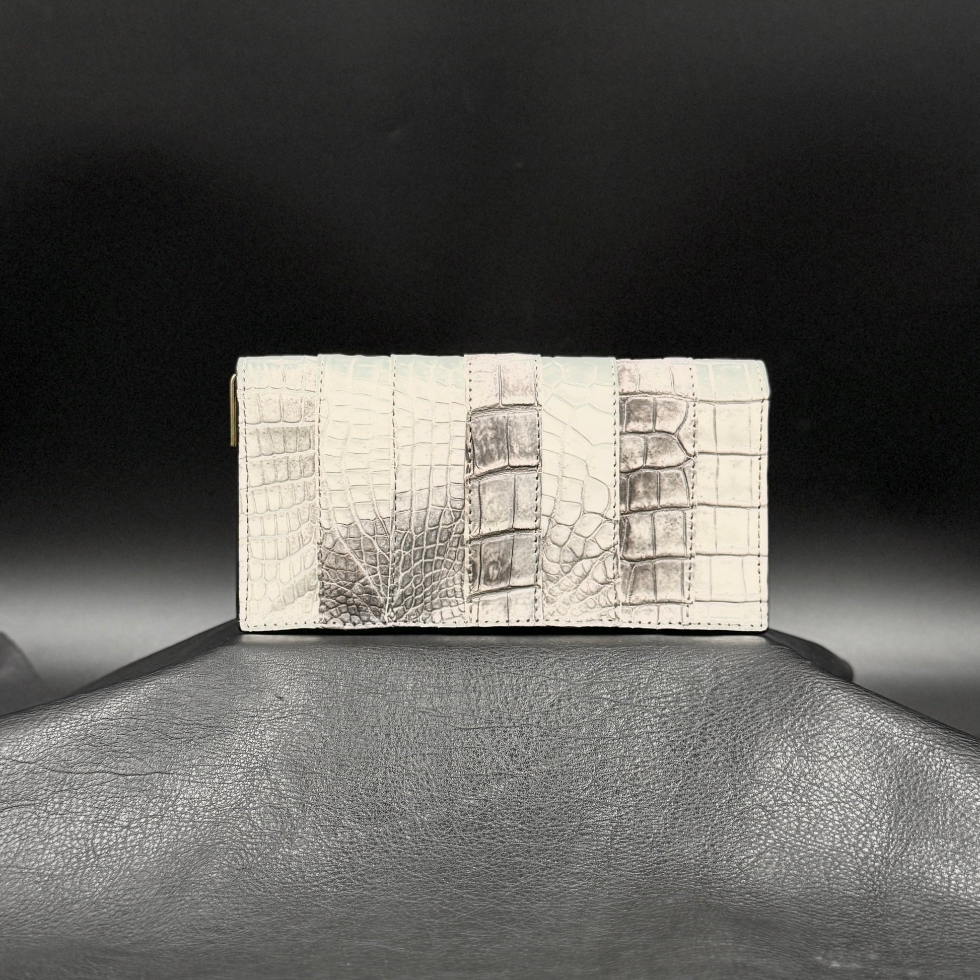 MOQUIPガルーシャドロップのクロコダイルエディション、コンパクトなクラッチパース。