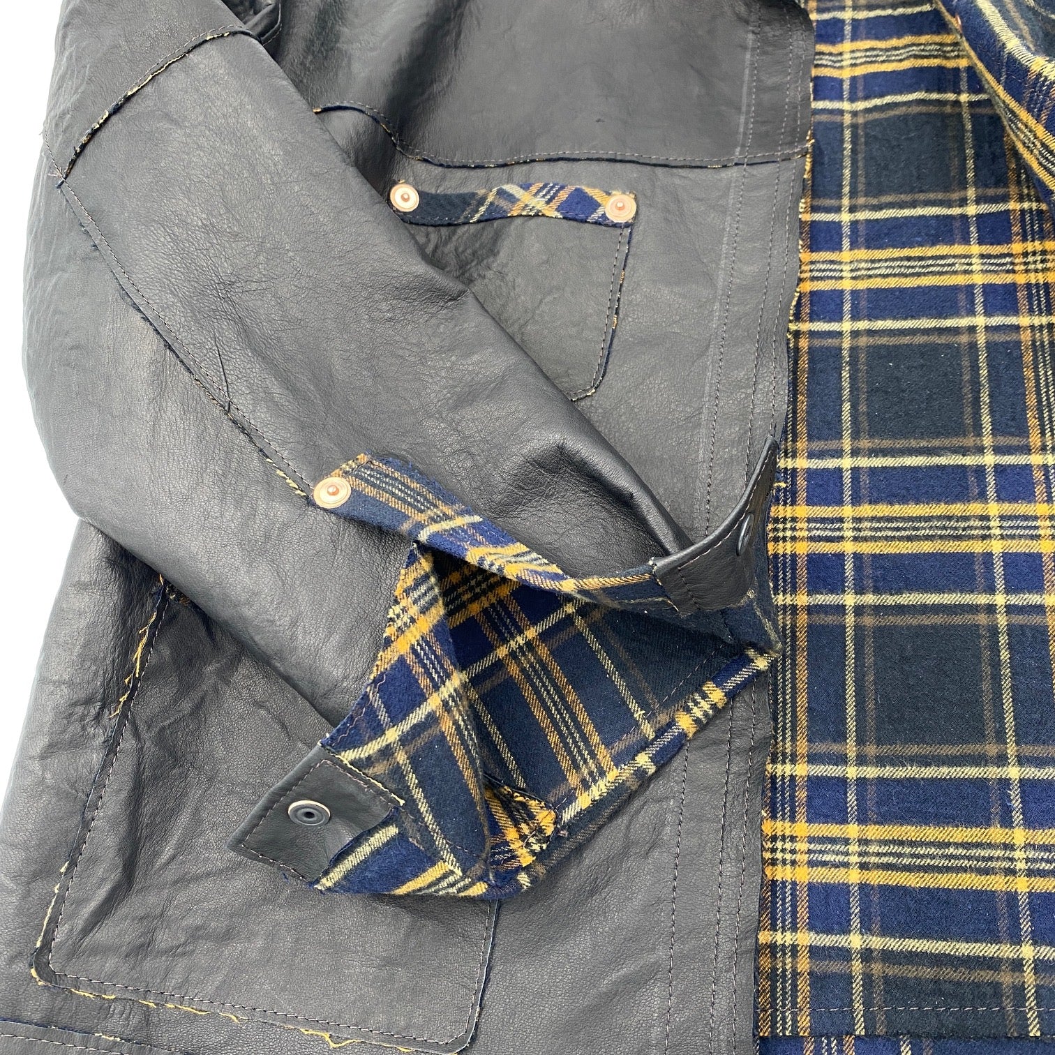 鹿は上品な顔立ちながら気性が荒い為、その革には比較的傷が多くみられますが、その反面、その手触りはシルクのように滑らかで柔らかく、吸い付くような質感が特徴です。0.3mmに薄く漉いた鹿革にボンディングした素材は、ワークシャツとしても、カジュアルにも着こなしやすいネルシャツをイメージした、綿100%のコットンビエラです。