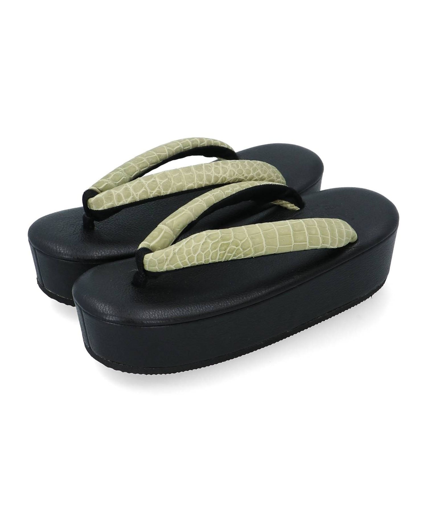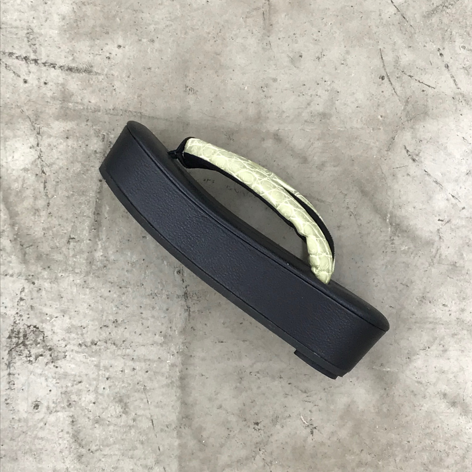 和装用の草履の鼻緒をMOQUIPオリジナルクロコダイルで仕立て、モダンなデザインに仕上げております。着物はもちろん、サンダル感覚でコーディネートしていただけます。