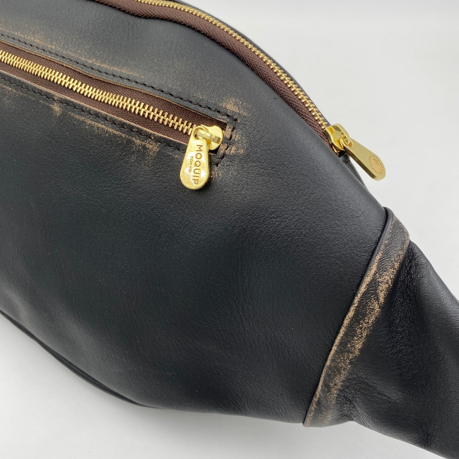 顔料、動植物の色素の意味を持つPigmentから作られた MOQUIPオリジナルのピグメントレザーは、植物タンニン鞣しで油を多めに含ませており、表面に顔料で色付けしています。仕立てた後にその顔料を部分的に剥がして、ヴィンテージ風の仕上げをしております。その隙間から浮かぶ茶芯(革の地の色のヌメ色)が奥深い風合いを出しています。