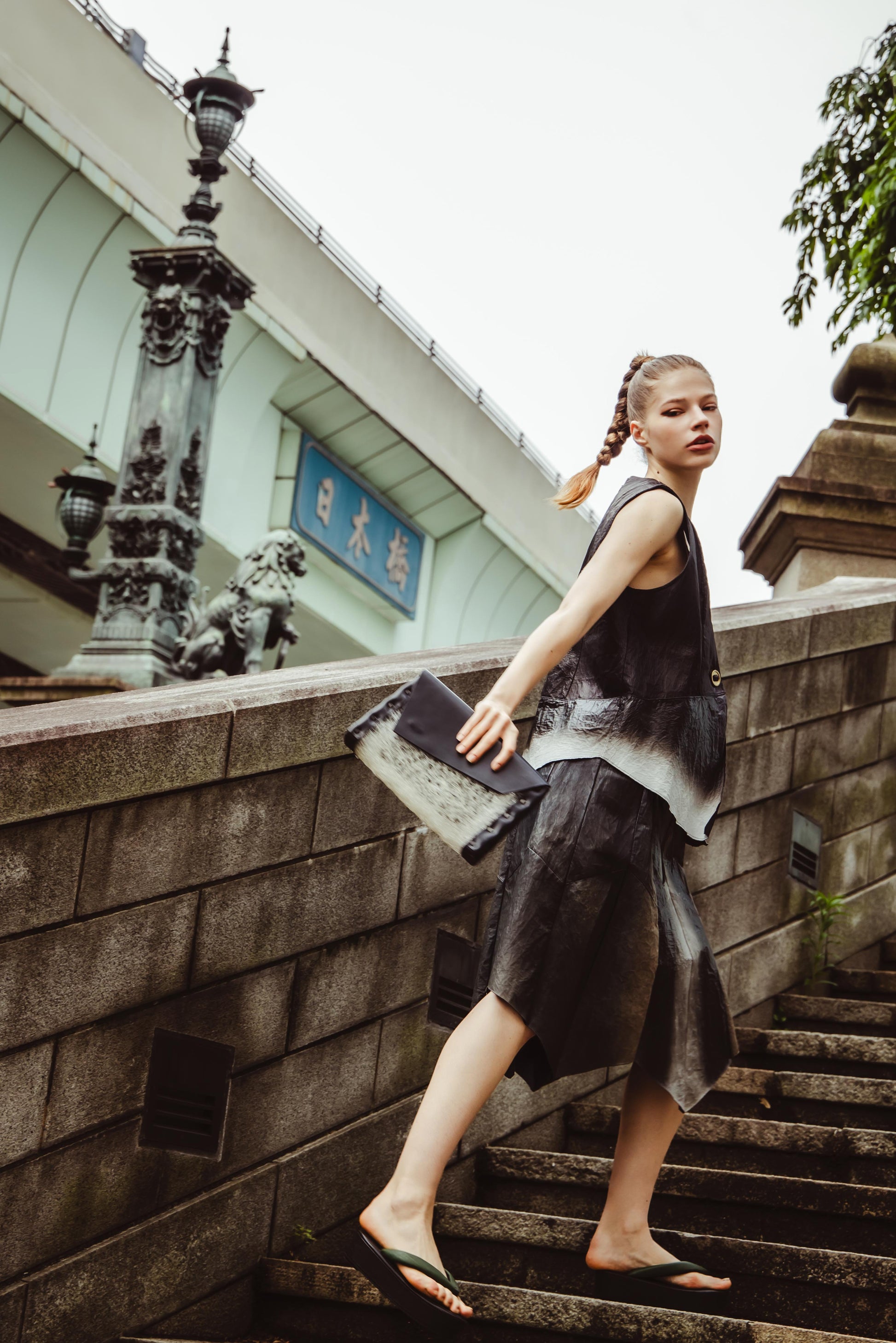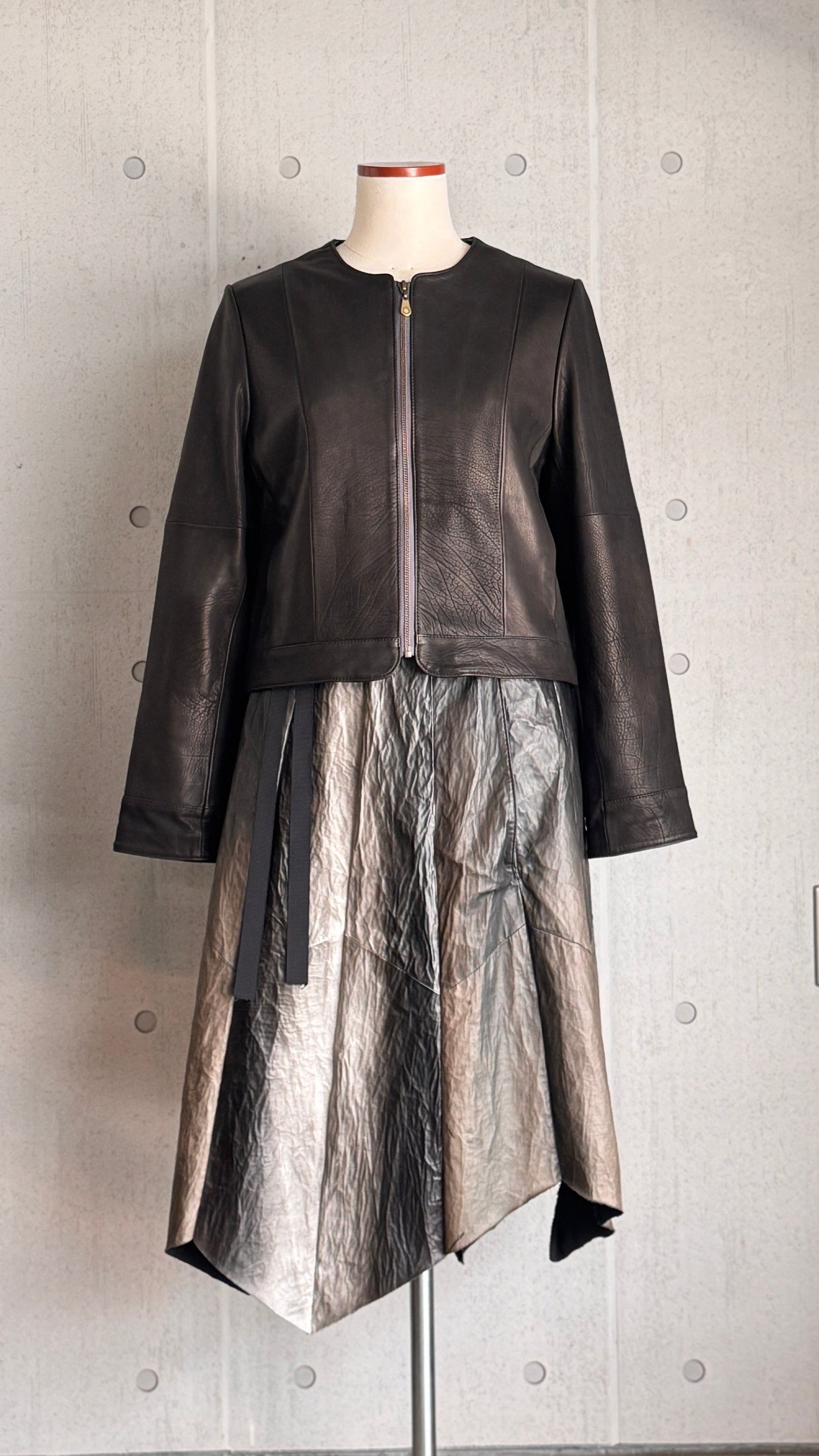 MOQUIP洗えるレザーウエア、ディアグラデーションシリーズ。手染めで陰影を出した0.3mmの鹿革にコットンをボンディングしたMOQUIPオリジナルの素材で、仕立てた後に水洗いし、洗いざらしのユニークな素材のシワ感、切りっぱなしのエッジのラフさをだして仕上げています。
