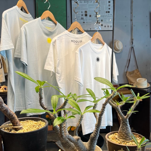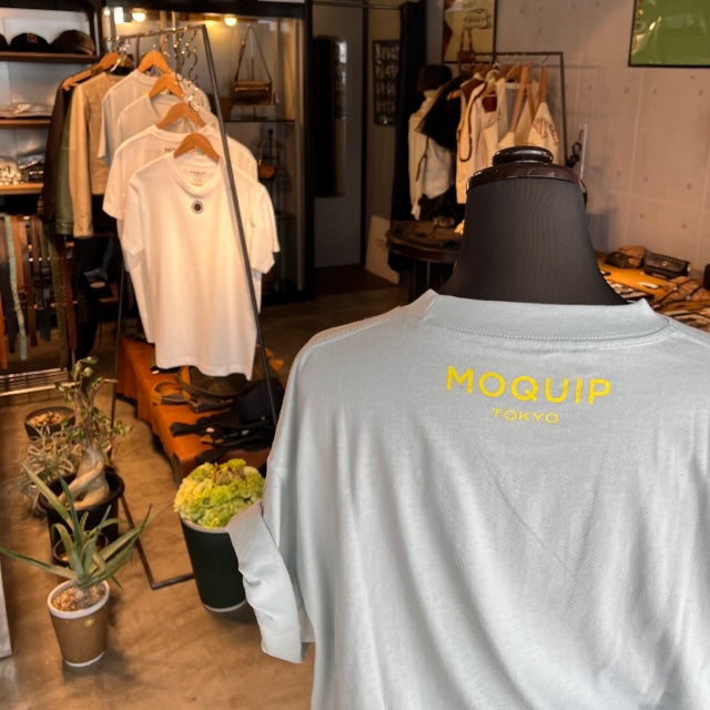 胸元にMOQUIPブランドサインがプリントされたオーガニックコットン製Tシャツです