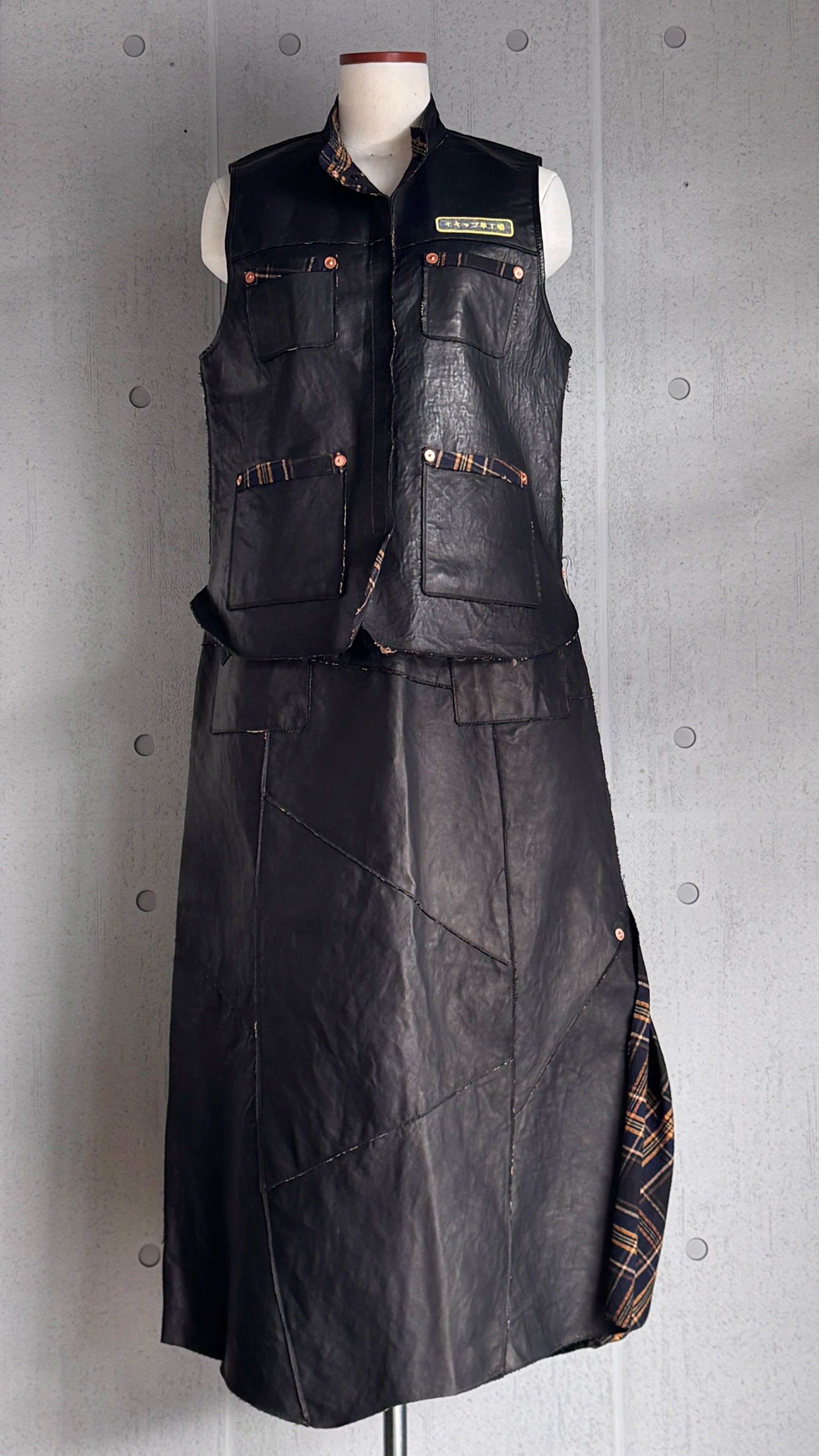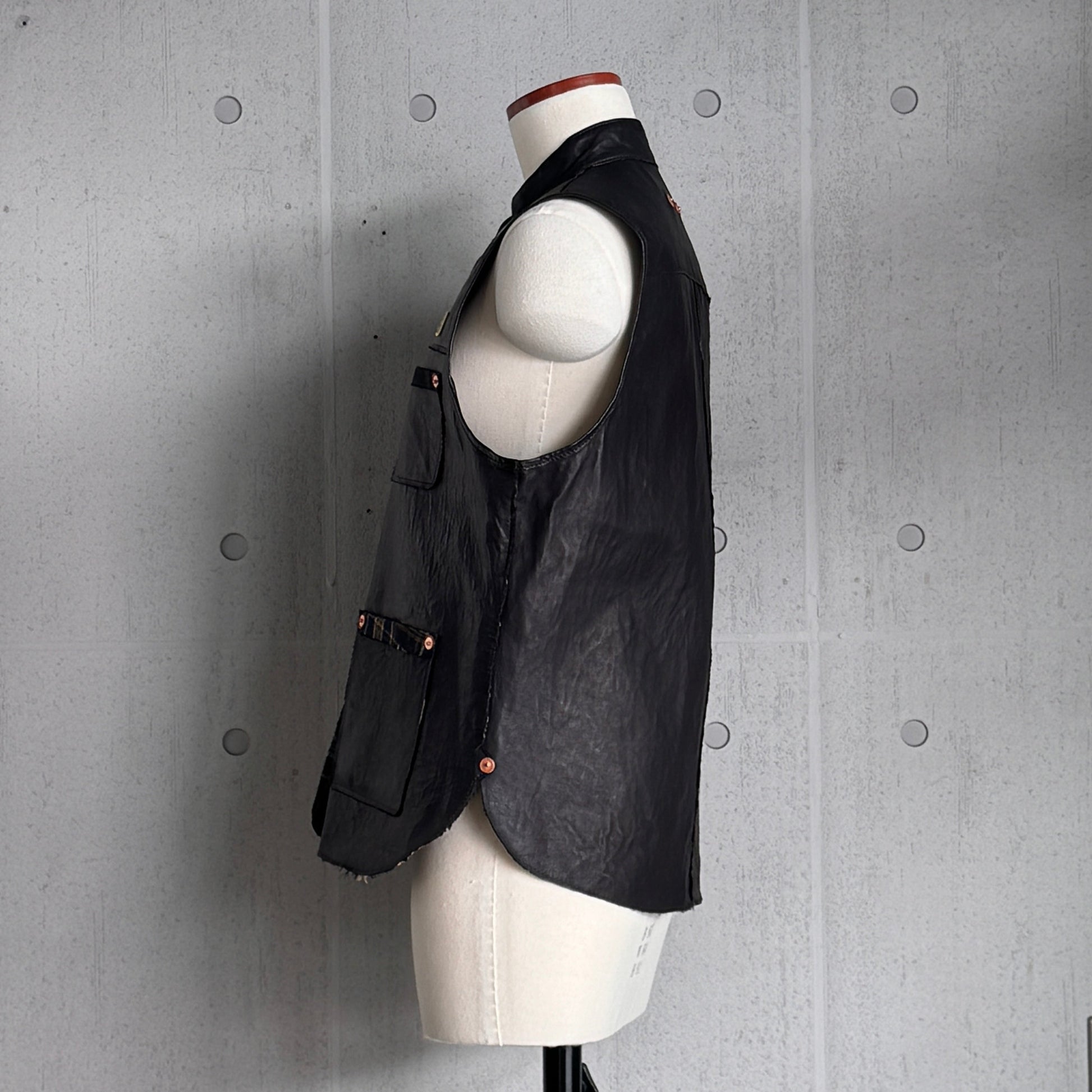 MOQUIP VEST leather factory BLACK