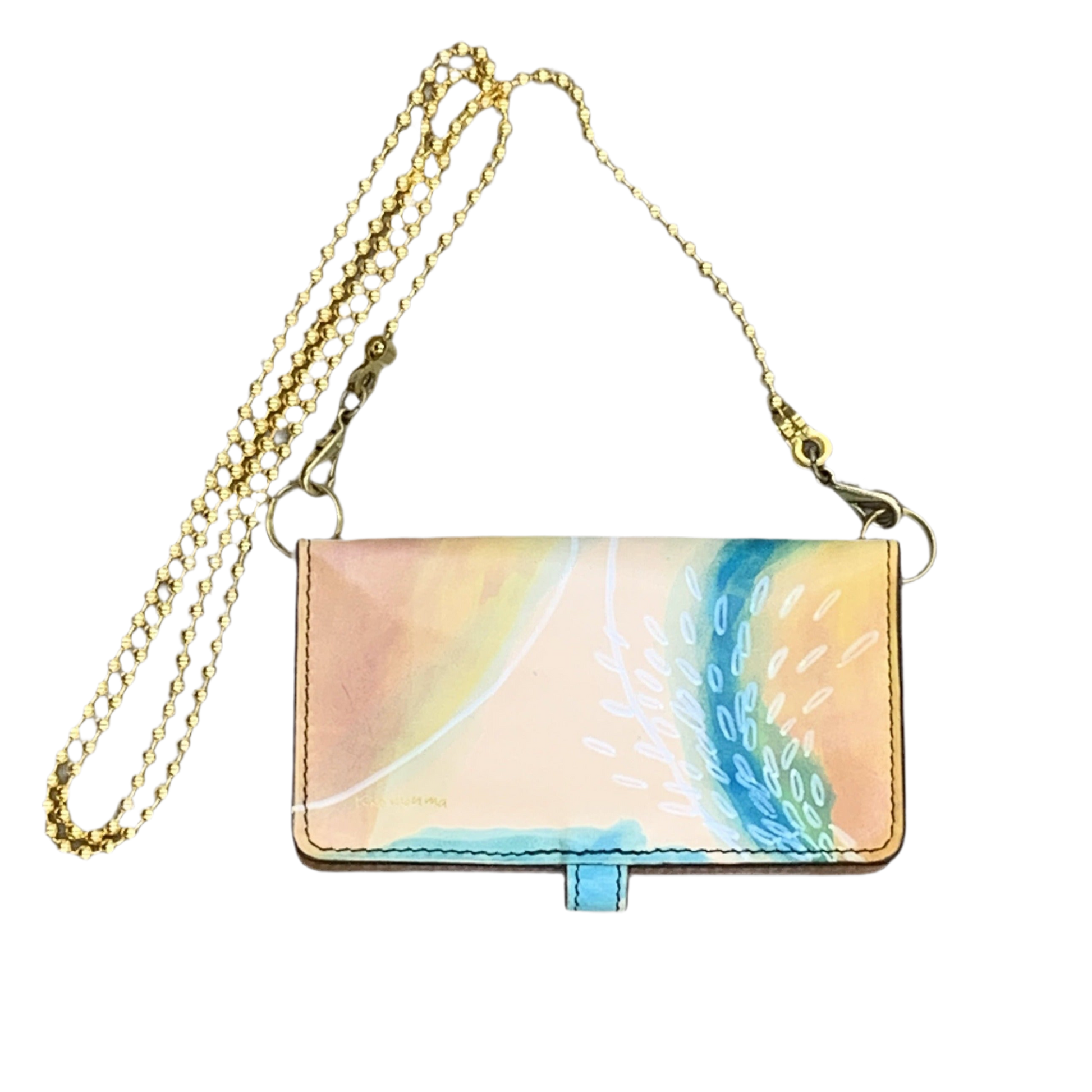 水、空の動き、空と海が溶け合う色の移り変わりを、羊革に描いています。革本来の味と染料の色の経年変化が楽しみなアイテムです。