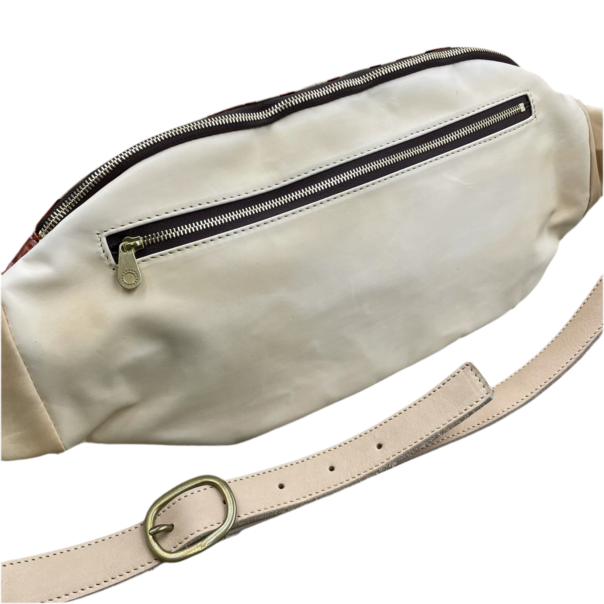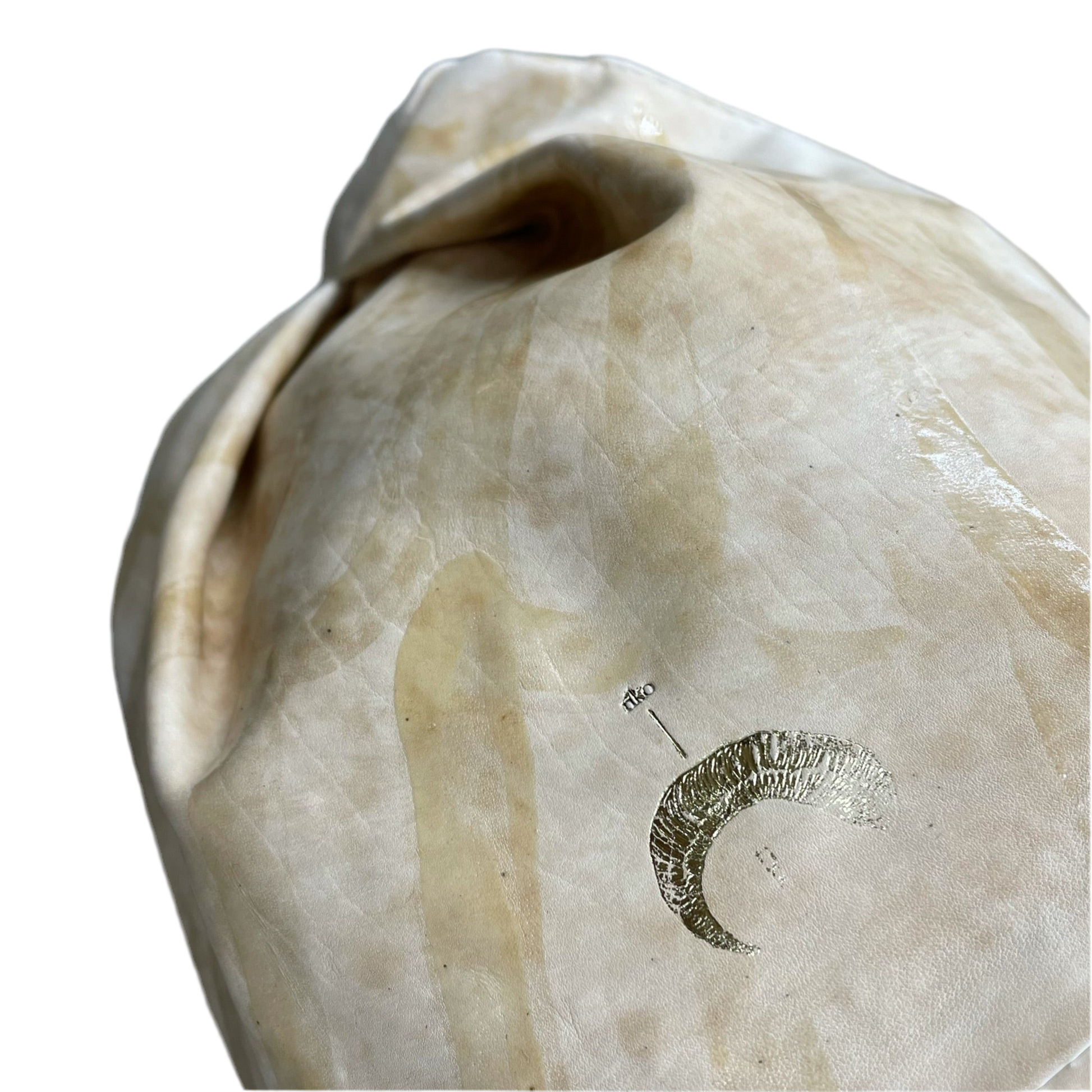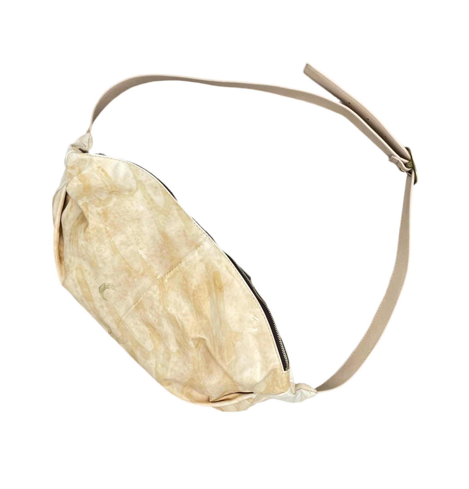 透明な顔料で色付けしたヌーディーな色合いのふっくらとした形で体に馴染む心地よいバッグです。